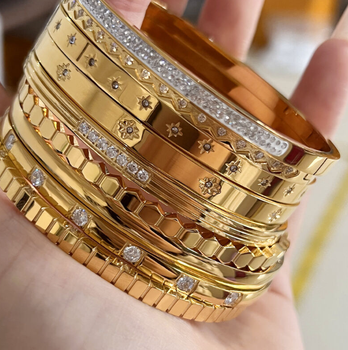 Vintage Gold Starワイドバングルブレスレットノンターニッシュステンレススチール防水アシアー非酸化性キュービックジルコンCzブレスレットジュエリー